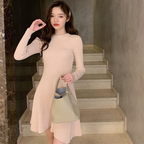 Women Long Sleeve Sweater Dress Women's Irregular Hem Casual Autumn Winter Dress Women O-neck A Line Short Mini Knitted Dresses